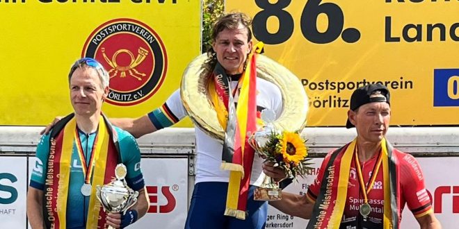 Es war ein geplanter Überraschungssieg: Rennradfahrer Oliver Romahn aus Droyßig bei Zeitz ist deutscher Straßenmeister der Masters II. Der 41-Jährige vom RSV Team Killerwalde gewann im Rahmen der 86. Auflage von „Rund um die Landeskrone“ in Görlitz das Rennen der Altersklasse ab 40 Jahre. So richtig hatte ihn wohl keiner …