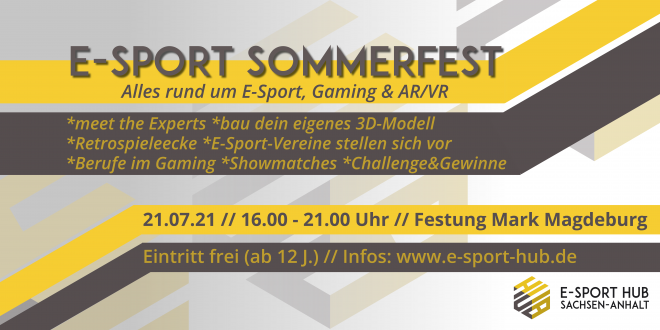 Am Mittwoch, 21. Juli 2021, lädt der E-Sport HUB zu eine E-Sport-Sommerfest. Der Eintritt ist frei. Mit dabei ist auch der LV Radsport Sachsen-Anhalt, der in Magdeburg sein Projekt „e-Cycling Nachwuchscup“ vorstellt und zum Schnuppertraining einlädt. Das Sommerfest wird in der Festung Mark ausgetragen. Es bietet an einem Nachmittag vielseitige …